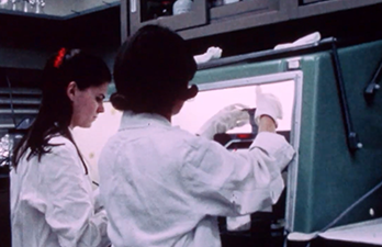 This footage from 1969 shows researchers at NASA's Ames Research Center examining samples of Moon rocks and soil that astronauts brought back from the Apollo 11 mission.